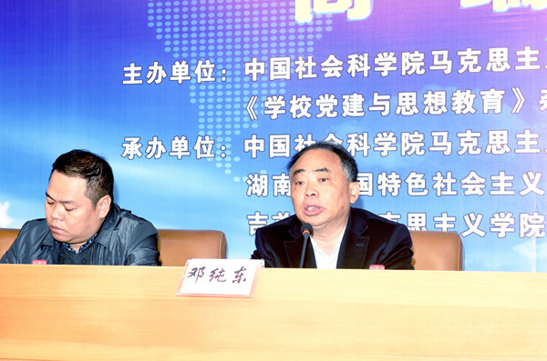 出席本次会议的有全国政协委员、中国社会科学院马克思主义研究院原党委书记、院长、中国社科院大学21世纪当代中国马克思主义高等研究院常务副院长、研究员邓纯东,湖南省社科联党组成员、副主席、研究员汤建军,中国社会科学院马克思主义研究院马克思主义发展研究部主任、研究员刘志明,中国社会科学网编辑部贾伟,《学校党建与思想教育》杂志社周玉婷, 威廉希尔官网纪委书记赵鹤平、副校长黄昕,马克思主义学院院长廖胜刚、党委书记戴林富,以及来自华中师范大学、重庆师范大学、东北师范大学等全国多家高校和研究机构的专家学者100 余人共聚一堂,学习探讨《习近平谈治国理政》(第二卷)精神。开幕式由刘志明主持。