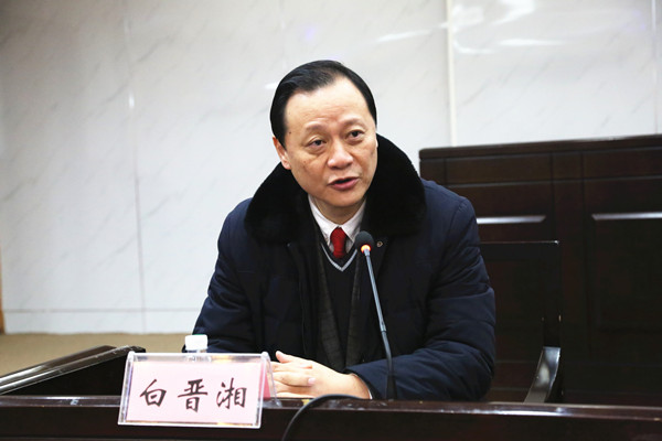 图为白晋湘同志发表就职致辞 孙立青摄