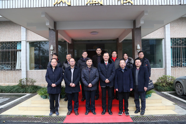图为游俊同志与学校现任党政领导班子成员合影 孙立青摄