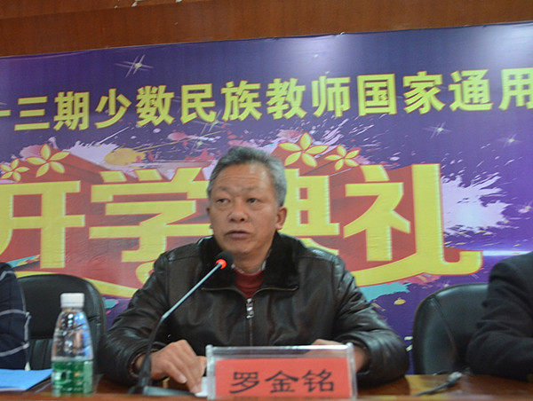 典礼在庄严肃穆的国歌声中拉开帷幕。罗金铭在致辞中代表学校党委、行政,向远道而来的各位领导、各位学员表示热烈的欢迎,向长期支持培训班教育教学的湖南省教育厅、吐鲁番教育局、张家界市教育局、市民族中学、崇实南校表示衷心的感谢,向培训团队的全体教师和工作人员表示亲切的问候。他表示,学校将努力做好教学和后勤保障工作,为第十三期培训班的圆满成功提供坚实保障。并希望学员们珍惜机会,在确保完成培训任务、确保安全的前提下,多走走,多看看,饱览祖国大好河山之壮丽和神奇,感受多民族大家庭之祥和与幸福,见证祖国经济与社会发展之巨大成就,从而增强维护民族团结的自信心。