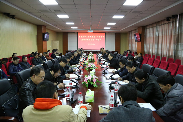 本网讯(孙立青)3月12日上午,学校在砂子坳校区和张家界校区同步召开会议布置“扫黑除恶”专项斗争暨综治维稳安全工作。校党委委员、副校长王绯、冷志明,校党委委员、宣传部部长王艳以及学校各部门、学院负责人参会。会议由校办主任佘佐辰主持。