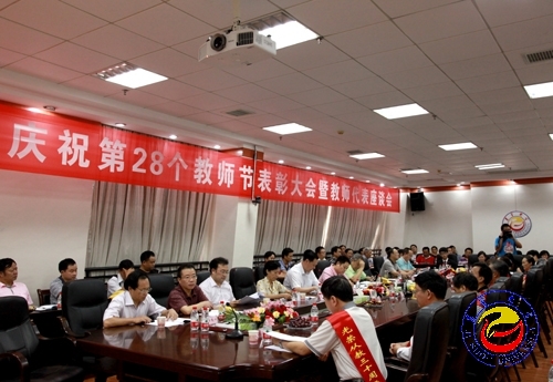 从教三十年教师代表王跃飞、周小清、吕学芳,省级青年骨干教师代表王志清,校级青年骨干教师代表史凯、粟娟,中青年教师代表李乐为、刘因灿,博士代表唐石、张惠以及新进教师代表李贵生等在会上纷纷作了精彩发言。大家以自己的切身感受和实际经验,畅谈了如何履行人民教师的神圣职责和重要使命,言语间充满了无比喜悦和荣耀。同时代表们对学校为自己提供发展的平台,学校倡导尊师重教、弘扬师德师风、争当育人模范的氛围以及校领导真心实意关心教职工表达了感激之情,并纷纷表示今后将更加努力工作,为学校的建设与发展奉献自己的力量。