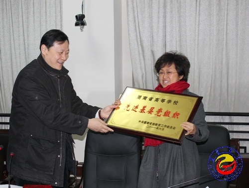 图为 白晋湘副校长为医学院党总支第四教工党支部颁奖 (肖璋 摄)