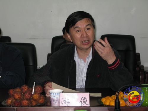 图为 游俊书记介绍学校情况