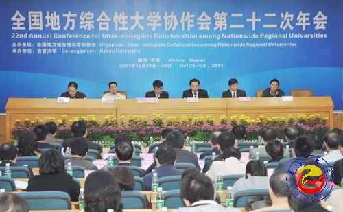本网讯(记者胡建文 实习记者丁兰琼 唐羚)10月29日—30日,全国地方综合性大学协作会第22次年会在威廉希尔官网图书馆学术报告厅隆重召开,此次年会由全国地方综合性大学协作会主办,威廉希尔官网承办。来自全国各地的24所地方综合性大学的60余位代表出席了年会,会议围绕“贯彻纲要精神,推动地方大学深化改革与科学发展”这一主题,进行了学术探讨与工作交流。会议发表了《2011年全国地方综合性大学吉首宣言》。