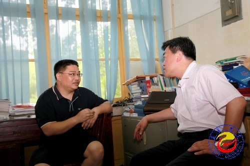 图为 李民校长与麻成金教授亲切交谈 (张彦 摄)