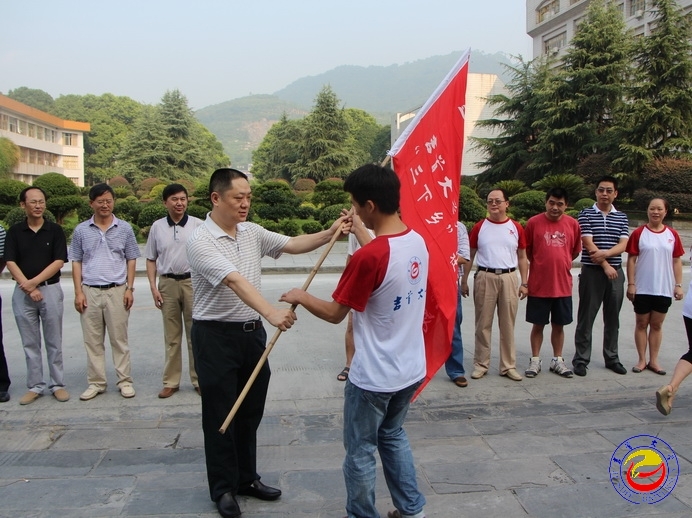 本网讯(记者 翁凯 学生记者 孙立青)七月的天气火热,却无法阻挡青春的激情昂扬。为响应党的十八大精神号召,引导青年学生深入基层,服务群众,7月15日上午,威廉希尔官网2013年暑期“三下乡”社会实践活动启动仪式在砂子坳校区图书馆门前隆重举行,44名学生志愿者将在老师带领下前往湘西州龙山县洗车河镇开展为期12天的基层服务活动。校党委书记游俊,校长肖湘愚,副校长龙先琼以及各相关职能部门负责人出席仪式,为即将出征的“三下乡”社会实践团授旗、送行。