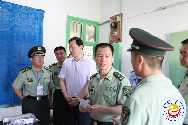 图为陈长寿一行在校医院了解兵源情况 (摄影 张彦)