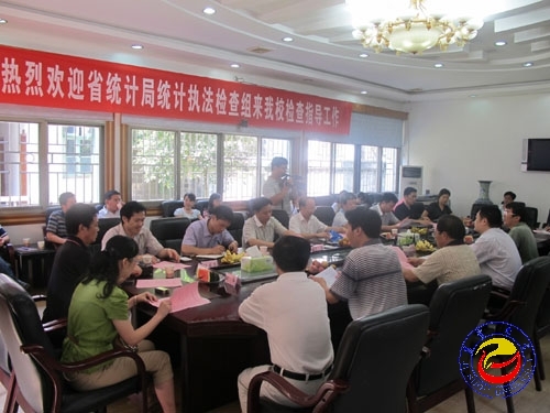 ,在湘西自治州、吉首市统计局相关领导专家的陪同下,以省统计局政策法规处处长李机生为组长的省统计局执法检查组一行莅临威廉希尔官网,对威廉希尔官网统计工作进行了为期一天的检查指导。检查工作以座谈、查阅资料、召开反馈会等形式进行,校长肖湘愚,副校级督导、校工会主席田国祥等领导出席了在校办二会议室召开的座谈会,相关部门负责人及专、兼职统计人员与会,会议由校办主任王先述主持。