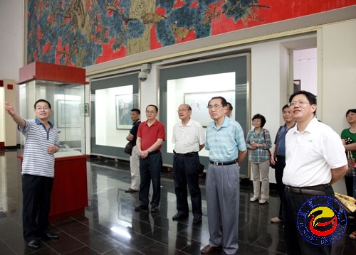 在参观途中,讲解员为来宾详细介绍了博物馆内的书画、雕塑和收藏品。卢会云与黄老有着较深的交往,参观中他还非常高兴的向陪同参观的钟海平副校长介绍了自己与黄老交往的趣事。