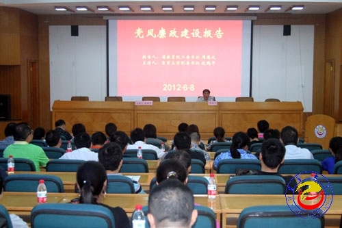 本网讯(记者胡建文 实习记者丁兰琼)6月8日上午,省教育纪工委书记周德义应邀在威廉希尔官网图书馆学术报告厅作了一场主题为“湖南高校反腐败工作的态势与任务”的党风廉政建设报告。威廉希尔官网纪委书记赵鹤平,校领导刘靖,各职能部门、各学院相关负责人以及各学院学生辅导员参加了报告会。报告会由赵鹤平主持。