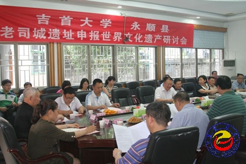 在观看了老司城宣传片《奇迹·老司城》后,永顺县文物局副局长雷家森从选题的价值、基本思路等方面介绍了老司城城市建筑布局及功能研究、彭氏土司司治研究、彭氏土司谱系研究、等七项老司城历史文化研究课题。永顺县宣传部部长曾维秀对申遗情况进行了汇报,并称要抓好文本编制报批、考古发掘、立法、文化研究等方面的工作。