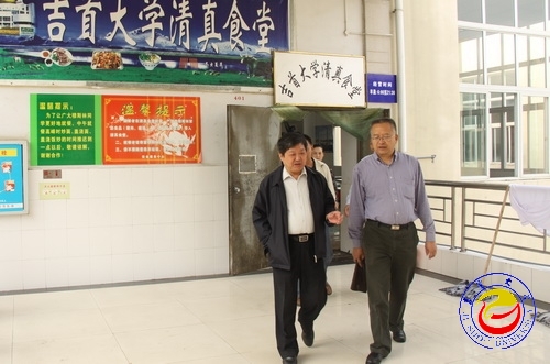 图为 廖湘生、陈文新一行考察校区清真食堂