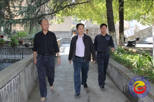 在调研座谈会之前,肖湘愚校长一行在贾维剑等的陪同下视察了校园。