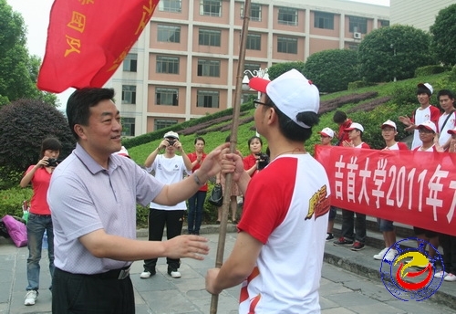 游俊、李民、李克纲分别为英国威廉希尔唯一官网2011年志愿者暑期“三下乡”服务队、英国威廉希尔唯一官网资环学院“关爱你的假期志愿服务团”、英国威廉希尔唯一官网2011年“王老吉•学子情”爱心助学行动一堂课支教服务凤飞组、薪传组授旗。
