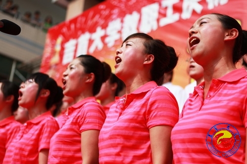 比赛现场赤日炎炎,却丝毫削减不了教职工们的激情。《解放区的天》、《没有共产党就没有新中国》、《军民团结一家亲》等一首首经典的红歌唱出了对我党的无限热爱之情,唱出了对我党90华诞的真诚祝贺。最终美术学院合唱队凭借《在太行山上》、《军民团结一家亲》两首歌曲获得此次比赛一等奖。旅游学院、第四分工会分别获得二、三等奖,老年艺术团合唱队荣获特等奖。