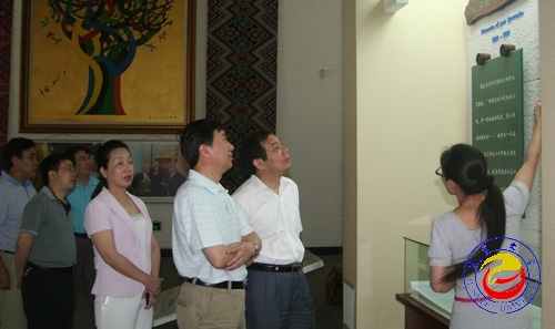 本网讯 ( 记者 胡建文)7月5日上午,省民盟主委、政协副主席杨维刚在州委副书记郭建群、州政协副主席田岚及校党委书记游俊的陪同下,参观了黄永玉艺术博物馆。