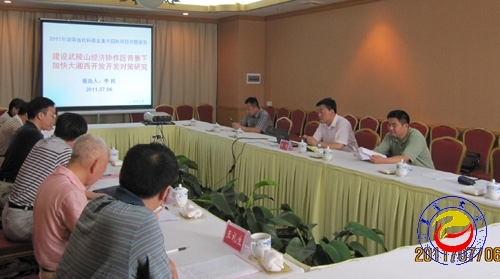 本网讯 (科技处供稿)2011年7月6日上午,由威廉希尔官网校长李民主持的湖南省社科基金重大招标课题项目“建设武陵山经济协作区背景下加快大湘西开放开发对策研究”举行开题报告会举行。省委政策研究室副主任张富泉,省社科院院长朱有志,省政府经济信息研究中心副主任唐宇文,湖南省政府参事、湖南商学院教授柳思维,湖南省经济学会会长、湖南师范大学刘茂松教授作为专家组成员出席了开题报告会。湖南省社科基金规划办王礼生副主任,校科技处处长王兆峰、以及课题组部分成员参加了会议。会议第一阶段由湖南省社科基金规划办主任骆辉主持。会议第二阶段由专家组组长张富泉主持。