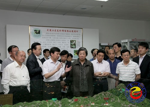 图为张榕明主席一行考察威廉希尔官网武陵山区教学与科研基地分布模型