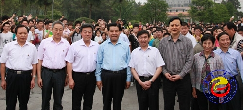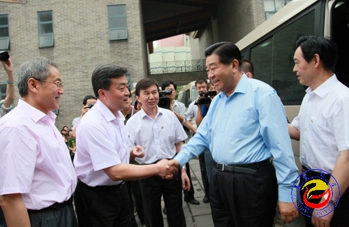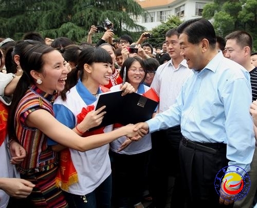 贾庆林主席还主动与闻讯前来欢迎的数千学子和老师亲切握手,挥手致意,场面十分热烈感人 。