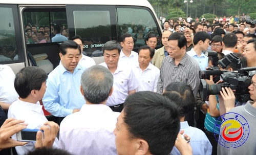 陪同贾主席来校视察的有国家民委主任杨晶,国家发改委副主任徐宪平,国务院扶贫办公室主任范小建;陪同贾主席的还有省政协主席胡彪,常务副省长于来山,省发改委主任胡衡华,省民委副主任徐克勤,省扶贫办公室主任张英维;州委书记何泽中、州长叶红专,校党政领导游俊、李民、张建永、刘靖、李克纲、白晋湘、曹晓鲜、赵鹤平、黎奇升、钟海平、田国祥全程陪同。