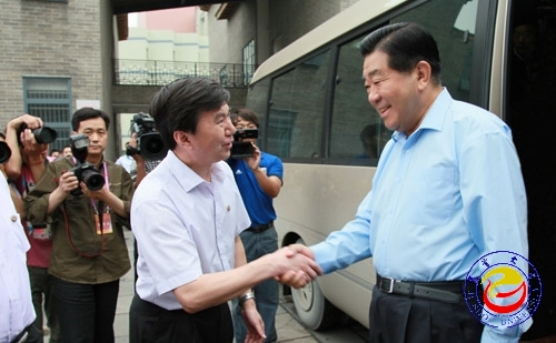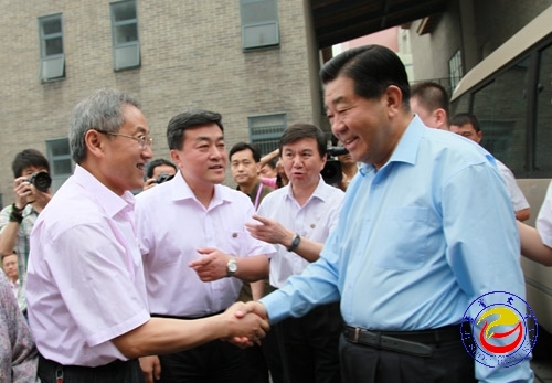 图为 贾庆林主席与威廉希尔官网党委副书记张建永亲切握手 (张彦摄)