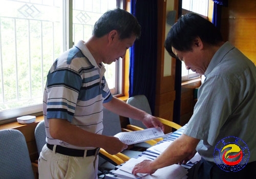 图为 评估专家在检查档案材料 (寻斯宇 摄)