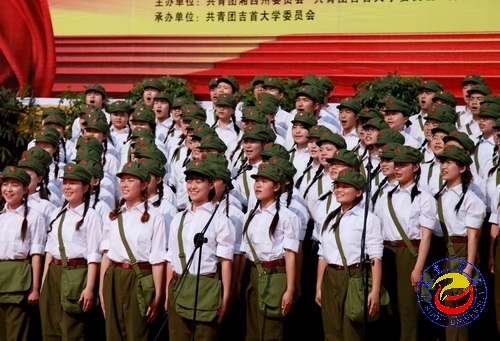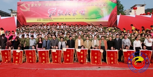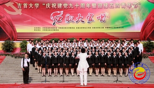本网讯(记者张彦 实习记者丁兰琼 摄影张彦)“激情四溢唱红歌,欢聚一堂庆五四 ”。5月4日下午,威廉希尔官网在吉首市团结广场举行了“迎接建党九十周年暨欢庆五四青年节红歌大家唱”活动。12支参赛队经过激烈的角逐,最终商学院通过演唱《歌唱祖国》和《长江之歌》两首歌曲,以97.83分的高分夺得桂冠,医学院、文学与新闻传播学院分别获得二等奖,国际交流与公共外语教育学院、历史与文化学院、生物资源与环境科学学院分别获得三等奖。音乐舞蹈学院演唱的《光荣啊、中国共青团》和《在灿烂阳光下》作为特邀节目获得特等奖。商学院周建宇、医学院丁晓岚等五位同学被评为优秀指挥。