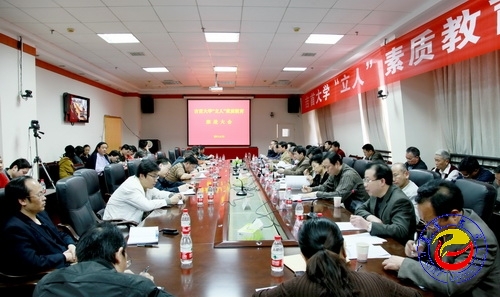 校党委书记游俊在会上作重要讲话。他指出,作为一种前沿、长期、系统且有深度的教育,“立人”素质教育凝聚了广大教职员工的智慧,是对学校各种教育活动的归纳、升华。各部门、院系要树立正确的观念,将“立人”素质教育体系、专业教学及目前的工作有机结合,共同推进。同时,游俊强调,必须正确认识“立人”素质教育目的与意义,把握高等教育本质与规律,改变“以传统的课堂教学为主,排斥其他教学”的观念,明确高校办学的使命和功能,着力人才培养、科学研究、社会服务;必须坚守高校办学理念与精神,增强学生的信念,使其真正做到“以人名校,以业报国”;必须不断探索“立人”素质教育方法、途径,加强创新;必须加速“立人”素质教育工作机制的形成,持之以恒,循序渐进地开展工作,并进行积极督查与反馈。