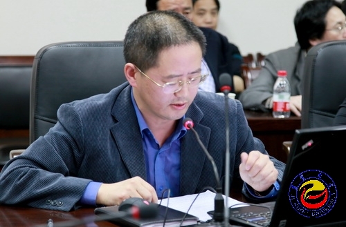 图为 教务处处长、素质教育中心主任龙先琼在会上发言