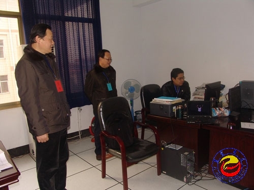 图为副校长白晋湘在检查考务工作室(摄影 胡建文)