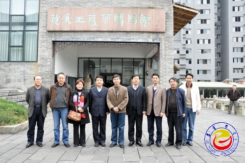 图为 校领导陪同王卓君一行参观黄永玉博物馆 (胡建文 摄)