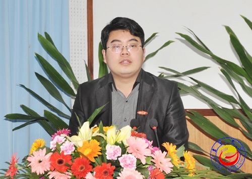 图为 研究生代表曹镠同学发言