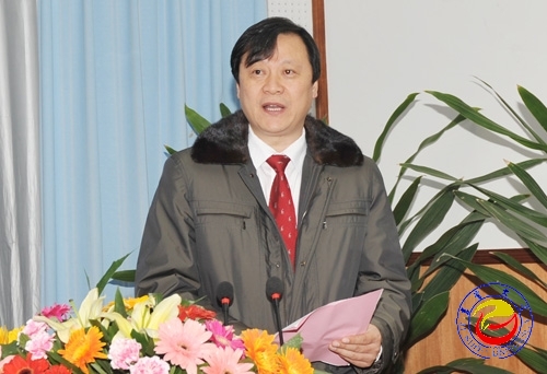 图为 威廉希尔官网校长李民(中)致开幕词