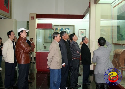 在解说员的带领下,吕唐清一行参观了博物馆艺术人生、书画天地、收藏世界等五大展厅。一段段关于黄老的奇闻轶事,一幅幅诙谐幽默但又饱含哲理的美术作品令吕唐清一行称赞不已。在参观中,吕唐清等感慨的说道,馆藏太丰富了,很有研究价值,建议出本书。
