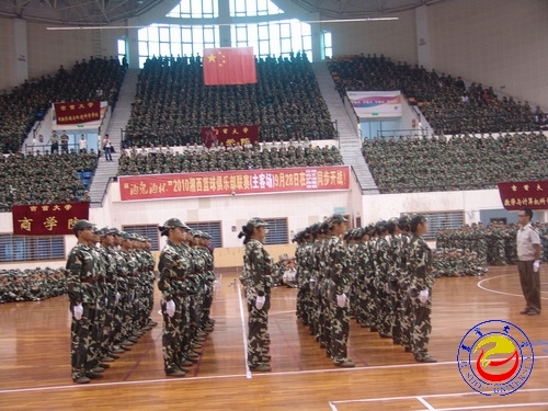 最后,在全体起立,齐唱校歌的豪迈气氛中,2010年新生军训工作圆满落幕。