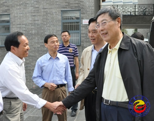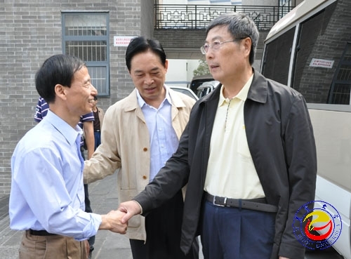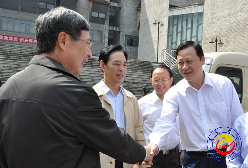 图为黄孟复副主席(右)与校纪委书记赵鹤平亲切握手 摄影胡建文