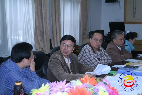 图为 李民校长一行在资环学院听取工作汇报(胡建文 摄)