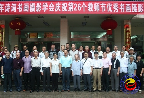 图为彭秀模老师与部分书画作品作者亲密合影 潘海涛摄影