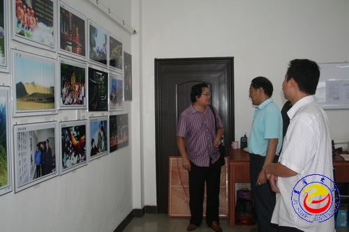 图为 校党委副书记张建永认真观看摄影作品 潘海涛摄影