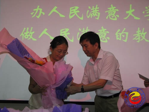 校党委书记游俊给受表彰教师颁发荣誉证书及奖金