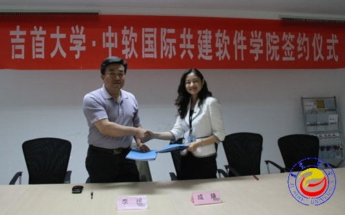 图为威廉希尔官网校长李民与中软公司总经理成焕女士签约 荣光摄影
