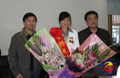 下午四时,胸戴闪耀徽章的全国先进工作者刘少英教授在田国祥主席的陪同下回到学校。刘教授一下车,便被鲜花和掌声包围,李民校长亲自到校门口迎接,对刘教授此次获得全国先进工作者的最高荣誉表示热烈祝贺。
