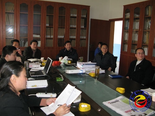 图为校领导在听汇报 苏卫平摄