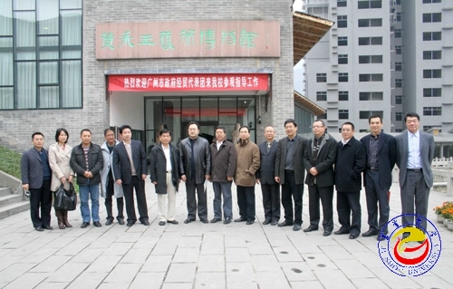 本网讯(记者 张彦 )1月21日上午,广州市番禹区区长楼旭逵、广州市经贸委副主任易鸣以及广州市政府经贸代表团部分成员在湘西自治州副州长曹世凯和威廉希尔官网副校长曹晓鲜、校长助理田宇以及州、校相关部门负责人的陪同、带领下参观了黄永玉艺术博物馆。