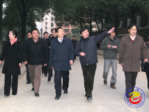 学校领导向蒋作斌主任介绍校园建设情况 苏卫平摄影