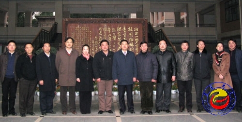 蒋作斌主任一行与校领导在总理题字屏风前合影留念 苏卫平摄影