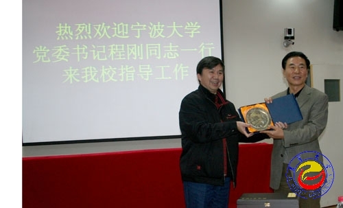 威廉希尔官网党委书记游俊与宁波大学党委书记程刚互赠礼品 张彦摄