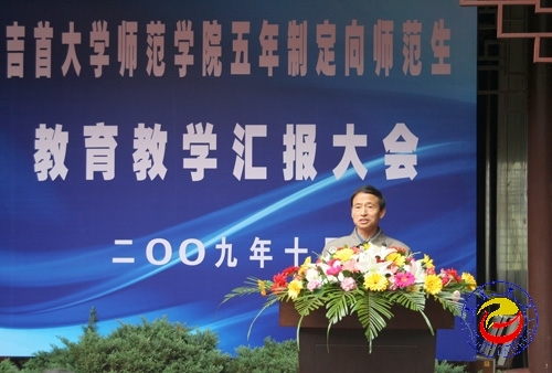 当天上午,教学成果汇报大会在潕溪书院内召开,会议由师院党委委员、副院长杨华主持。会上,该院院长贾维剑首先向来宾汇报了学院五年制定向师范生教育教学情况。师院作为 “湘西自治州教育培训基地”和“湘西自治州中小学教师继续教育中心”,于2006年被省教育厅确定为培养大专层次小学教师的学校,负责湖南西部地区“农村小学教师定向培养专项计划”的具体实施,至今已招收4届741名学生。