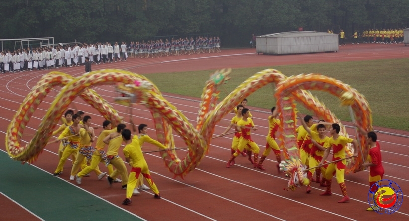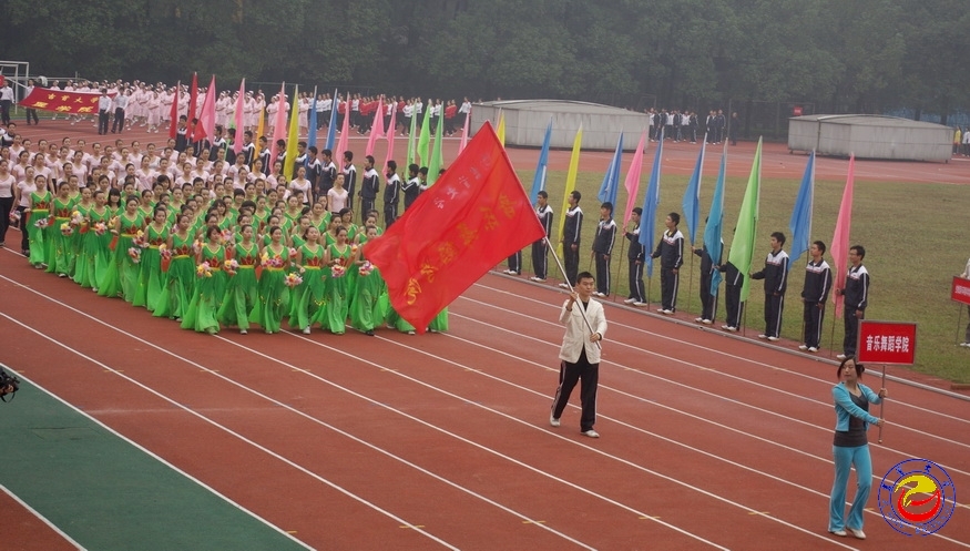 在运动会入场式中,国旗队、校旗队、彩旗队及各学院方阵以饱满的激情步入运动场,精彩别具的造型和艺术的表演充分展现了各队独具的魅力,赢得了在场观众的热烈掌声,整个入场式精彩紧张而有序进行。随后校党委书记游俊宣布校运动会正式开幕。在庄严的升国旗仪式后,校长、校体委主任李民致开幕词。他在开幕辞中指出,体育是一种更高、更快、更强的境界,是力量的角逐、智慧的较量、美的展示、理想的飞扬。他希望本届校运会能本着“敢为人先、奋力拼搏”的精神,运动员赛出风格、赛出水平;裁判员严守规程、公正裁判;工作人员忠于职守、热情服务,并强调学校将认真贯彻党的方针,大力开展素质教育,推动威廉希尔官网体育事业的发展。之后,裁判员代表和运动员代表分别宣誓。在体育科学学院的苗鼓、健美操队、武术队、舞龙队、体育舞蹈队先后献上精彩表演后,运动会正式开始。
